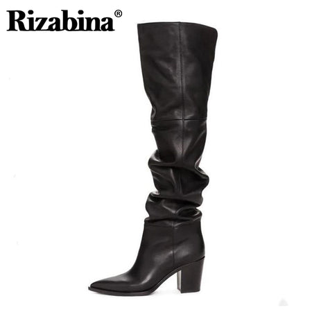 RIZABINA Size 36-43 Real Leather Women Over Knee Boots Fashion Brand Sexy High Heel Winter Shoes Women Party Street Footwear